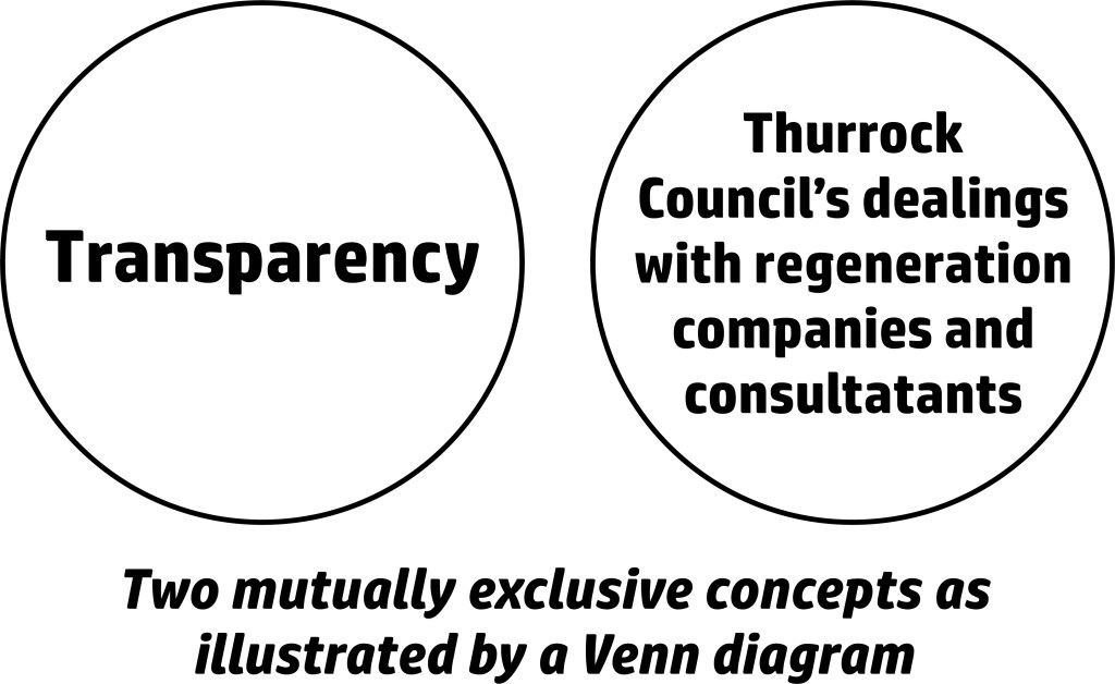 We read this story on Thurrock Nub News with a weary and somewhat cynical sigh: Silence and mystery still surrounds future of council’s regeneration companies after authority signs half million pound deal with private firm. It’s a pretty sound piece of local journalism to be fair. However, there’s one minor quibble, namely, there’s no mystery about the relationship Thurrock Council has with regeneration companies and consultants because it’s plain for all to see that there’s no transparency.