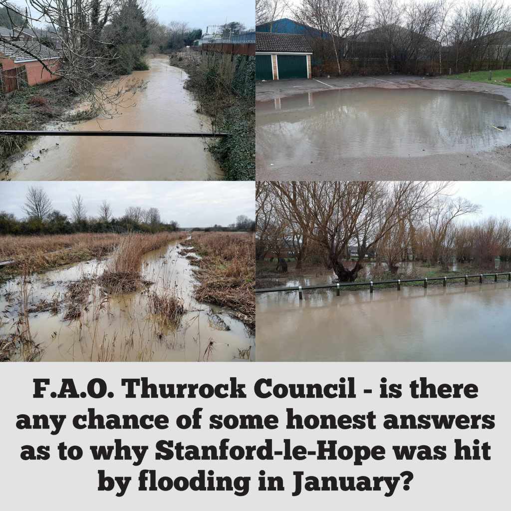 These were a couple of posts we put up after flooding hit Stanford-le-Hope and other areas of south Essex on January 14th: A lack of joined up thinking = a clusterf**k! and: After the flood…the questions… After the flooding, a promise was made by the two ward councillors for the Stanford West ward, Cllr. Shane Hebb and Cllr. Terry Piccolo, that there would be an investigation into what the causes of it were. Both councillors are members of the Tory ruling group on Thurrock Council. Piccolo is the mayor (a ceremonial role) and Hebb is a senior cabinet member.