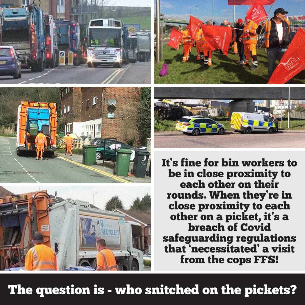 So, it’s okay for the workers to be in close proximity to each other while doing their jobs but absolutely not while they’re on a picket line. Does this make any sense to you? It makes no sense to us whatsoever unless you factor in the petty vindictiveness of whoever made the allegations about the pickets breaking Covid regulations. Who would be so vindictive as to phone in an allegation like this to the cops? Let’s just say, it wouldn’t come as any surprise if the person making those allegations was from Thurrock Council.