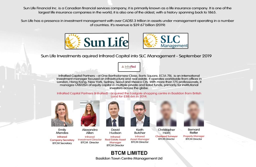 BTCM (Basildon Town Centre Management) are described as a consortium of landowners including the owners of the Eastgate shopping centre and Basildon Borough Council.